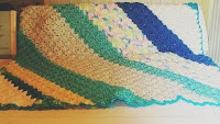 Now, what we love about this one is that we can easily use up our leftovers. These photos show a baby blankie about 34" square. I even used different weights - some sport, some a lightweight worsted. I was careful to keep a "drape" so baby could be wrapped easily.